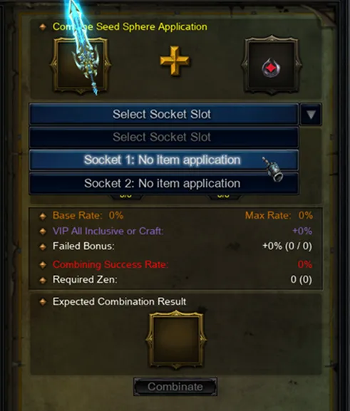 Nesta seção você pode adicionar Seed Sphere ao item com soquete